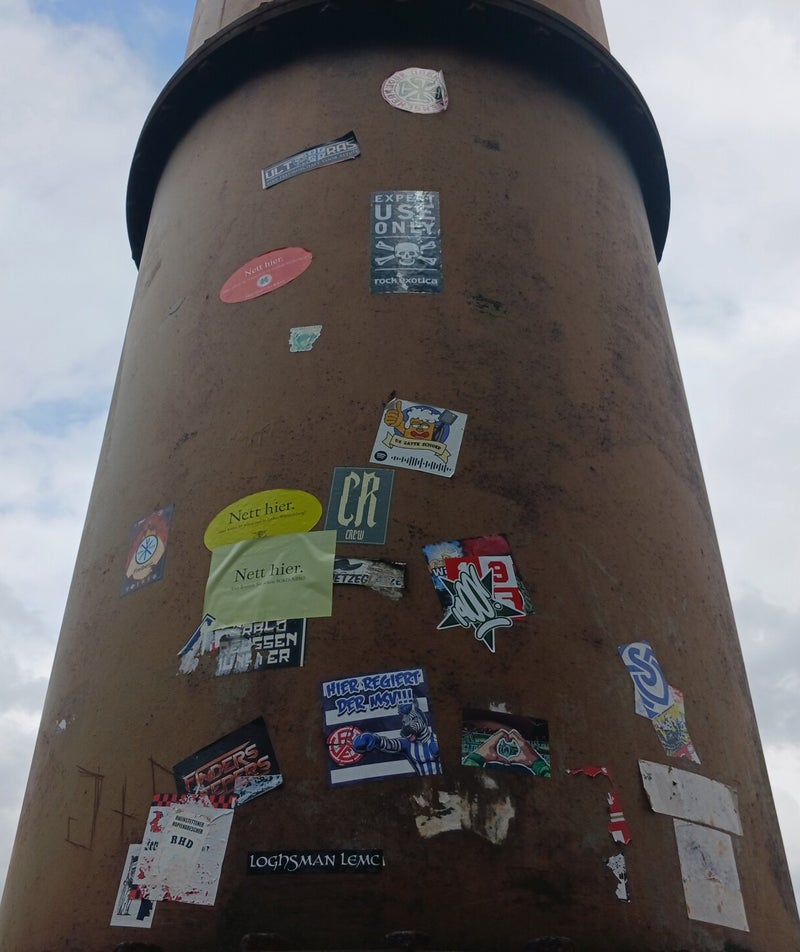 Die Anlagen des Landschaftsparks sind ein beliebter Ort für Stickernde aus aller Welt. Insbesondere der höchste, noch erreichbare Schornstein des Hochofens 5 wird von den kleinen Klebern in Beschlag genommen. Im ersten Teil des Eintrags, der den unteren Teil des Schlots zwischen April und Oktober 2025 analysierte, wurde eine erstaunliche Vielfalt an Stickern aus Niedersachsen ausgemacht. Der zweite Teil will noch höher hinaus.